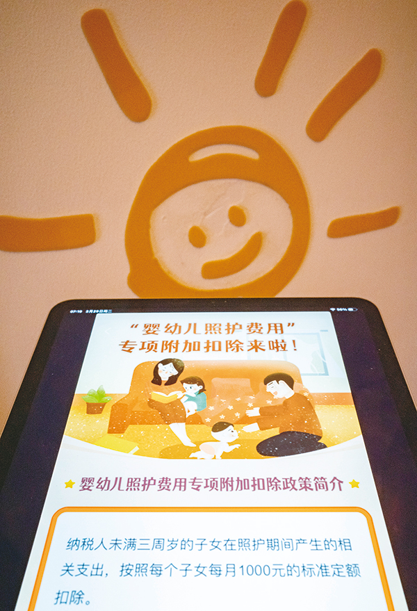 今年財政政策將堅持階段性措施和制度性安排相結合,減稅與退稅并舉,延續實施部分2021年到期的階段性減稅降費政策,研究出臺新的政策舉措。我國出臺嬰幼兒照護費用專項附加扣除政策,從2022年1月1日起實施。圖為2022年3月29日,中國“個人所得稅”官方應用程序顯示出嬰幼兒照護費用專項附加扣除政策簡介,從當日起可以填報。 中新社記者 侯宇/攝