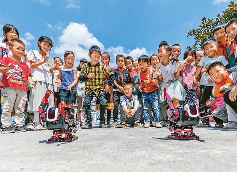 2021年9月11日,以“百年再出發(fā),邁向高水平科技自立自強”為主題的全國科普日活動在全國各地啟動。自2004年以來,中國科協(xié)已連續(xù)17年成功舉辦全國科普日活動,為積極涵養(yǎng)創(chuàng)新生態(tài)、提升全民科學素質(zhì)、服務高水平科技自立自強作出貢獻。圖為2021年9月15日,貴州省科技館聯(lián)合黔西市科協(xié)、黔西市教育科技局一行,走進烏蒙山區(qū)鐵石苗族彝族鄉(xiāng)鐵盔小學,為孩子們帶來一場科普盛宴。 求是圖片 范暉/攝