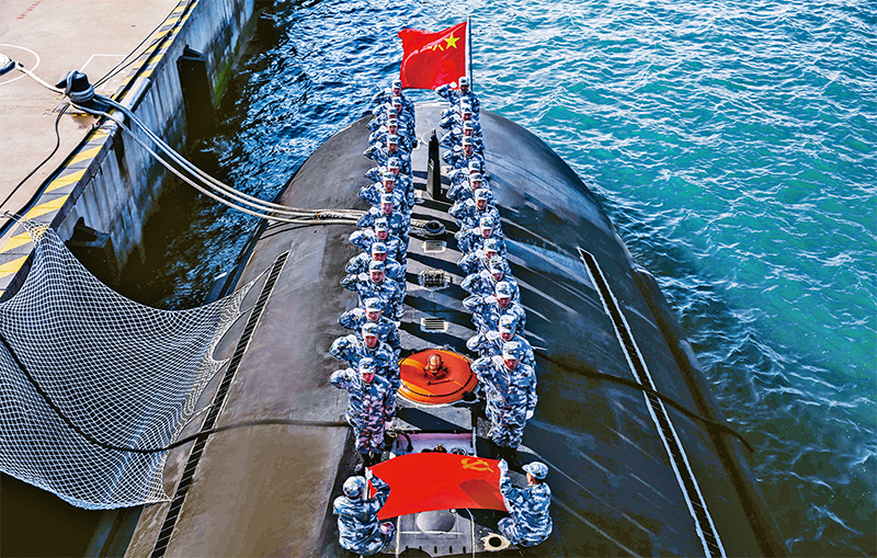 圖為海軍某潛艇基地官兵舉行重溫入黨誓詞儀式(資料照片)。