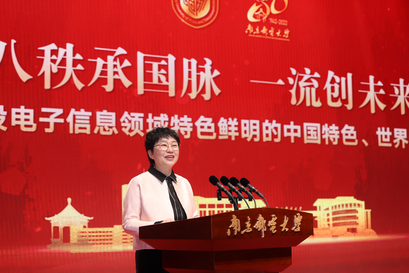 副省長(zhǎng)陳星鶯在講話中指出,南京郵電大學(xué)是一所具有光榮傳統(tǒng)的高校。辦學(xué)80年來始終傳承紅色基因,扎根中國(guó)大地、植根江蘇沃土,與江蘇同發(fā)展共前進(jìn);深耕信息技術(shù)領(lǐng)域,在推進(jìn)建設(shè)網(wǎng)絡(luò)強(qiáng)省、數(shù)字江蘇中展現(xiàn)擔(dān)當(dāng)。她希望南郵在助力國(guó)家科技自立自強(qiáng)上取得更大突破,堅(jiān)持“四個(gè)面向”,加快關(guān)鍵核心技術(shù)攻關(guān),努力在重要科技領(lǐng)域成為領(lǐng)跑者,在新興前沿交叉領(lǐng)域成為開拓者;在服務(wù)江蘇現(xiàn)代化建設(shè)中貢獻(xiàn)更多力量,助力打造數(shù)字經(jīng)濟(jì)創(chuàng)新發(fā)展新高地,為經(jīng)濟(jì)高質(zhì)量發(fā)展插上信息化翅膀、增添強(qiáng)大新動(dòng)能,為更好“扛起新使命、譜寫新篇章”,全面推進(jìn)中國(guó)式現(xiàn)代化江蘇新實(shí)踐作出新的更大貢獻(xiàn)。