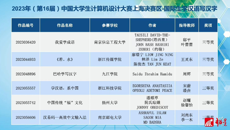 7月20日,2023年(第16屆)中國大學生計算機設(shè)計大賽上海決賽區(qū)暨國際生“學漢語,寫漢字”大類國賽結(jié)果公布,我校國際學生Aminul、Shawon、Atia(孟加拉籍)組成的“南郵孟之隊”憑借“古文-UnilM:基于預(yù)訓(xùn)練模型的古代現(xiàn)代漢語機器翻譯”項目獲得國家級二等獎,國際學生Ashraful、Sagor、Badsha(孟加拉籍)組成的“郵夢有孟隊”憑借“漢易碼一高效中文輸入法”項目獲得國家級三等獎。