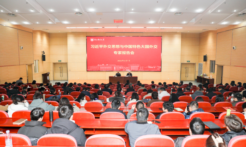 為鞏固拓展學(xué)習(xí)貫徹習(xí)近平新時(shí)代中國(guó)特色社會(huì)主義思想主題教育成果,更加全面深入學(xué)習(xí)貫徹習(xí)近平外交思想,不斷開(kāi)創(chuàng)高水平對(duì)外開(kāi)放辦學(xué)新局面,3月7日上午,徐步大使應(yīng)邀來(lái)校作《習(xí)近平外交思想與中國(guó)特色大國(guó)外交》專(zhuān)題報(bào)告。在校校領(lǐng)導(dǎo)、全體中層干部、師生代表參加會(huì)議。校黨委書(shū)記郭宇鋒主持報(bào)告會(huì)。