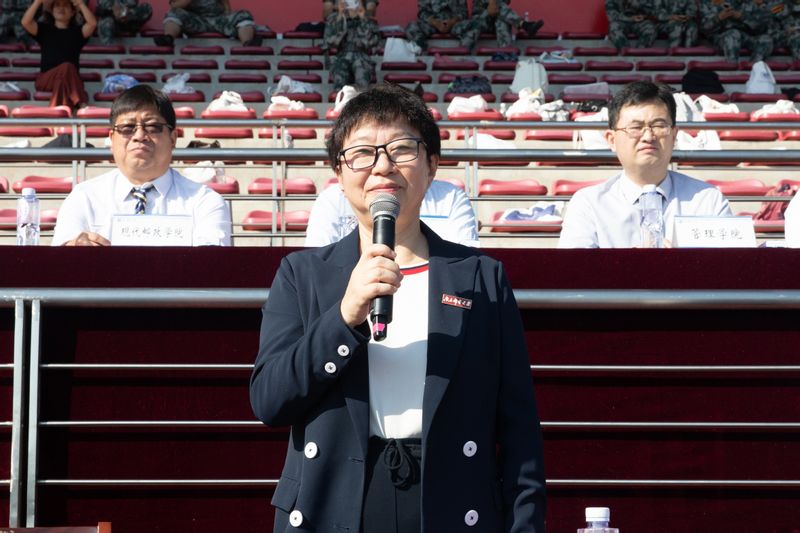 黨委學生工作部部長、學生工作處處長、人民武裝部部長李曉華主持軍訓成果匯報會
