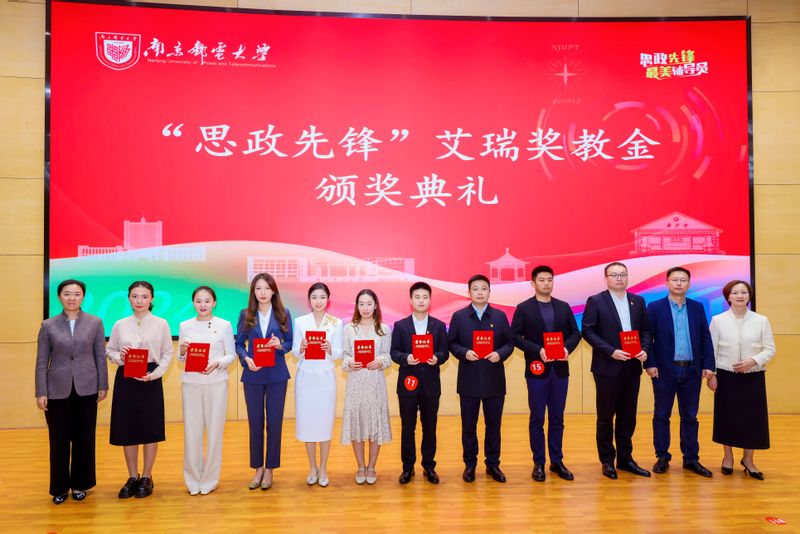 華為南京研究所招聘經理劉文旭、南京艾瑞集團董事長楊利霞、南京艾瑞集團市場部總監陳韓受邀出席“思政先鋒”華為獎教金、艾瑞獎教金頒獎典禮,共同為獲獎的18名輔導員頒獎。支持企業代表、兄弟高校代表、我校相關部門負責人和全體學工干部現場觀摩。