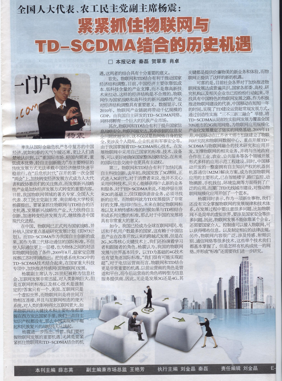 【中國(guó)網(wǎng)友報(bào) 中國(guó)移動(dòng)周刊】緊緊抓住物聯(lián)網(wǎng)與TD—SCDMA 結(jié)合的歷史機(jī)遇