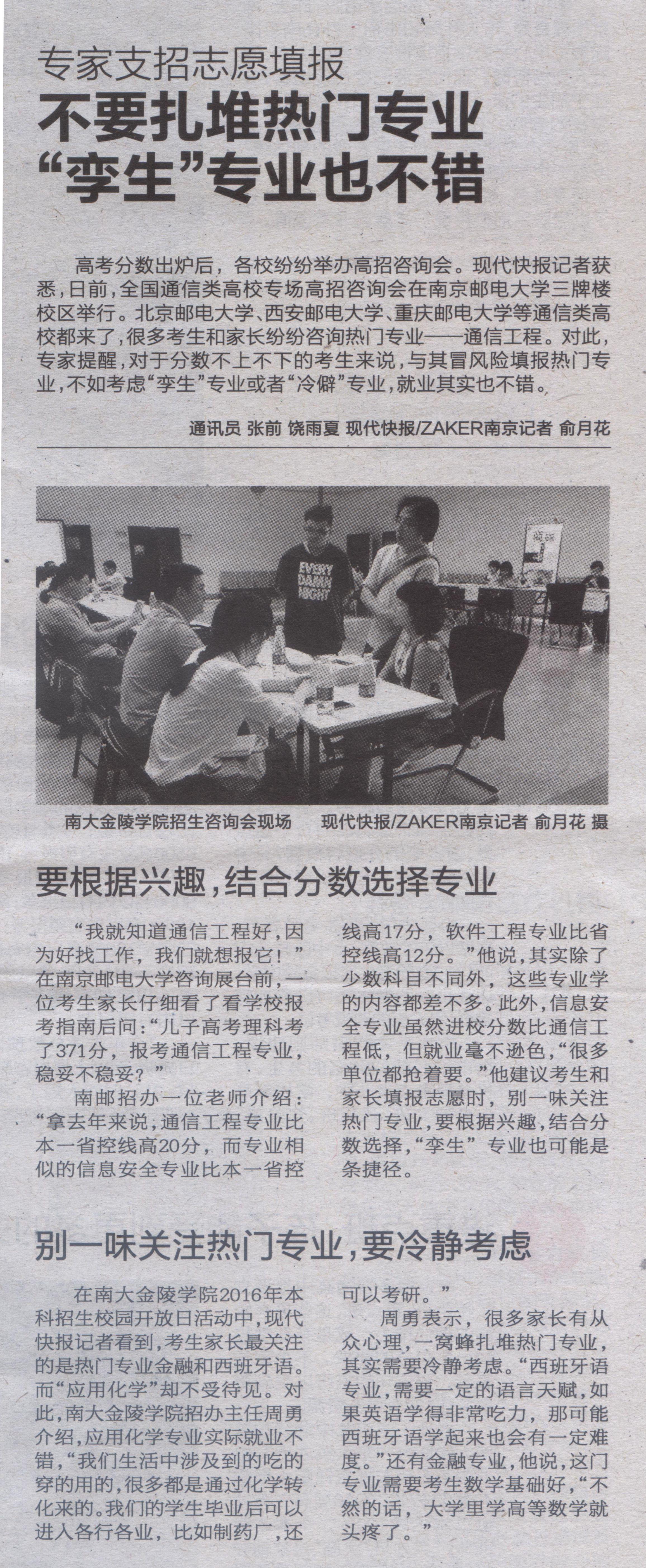 【現代快報】不要扎堆熱門專業 “孿生”專業也不錯