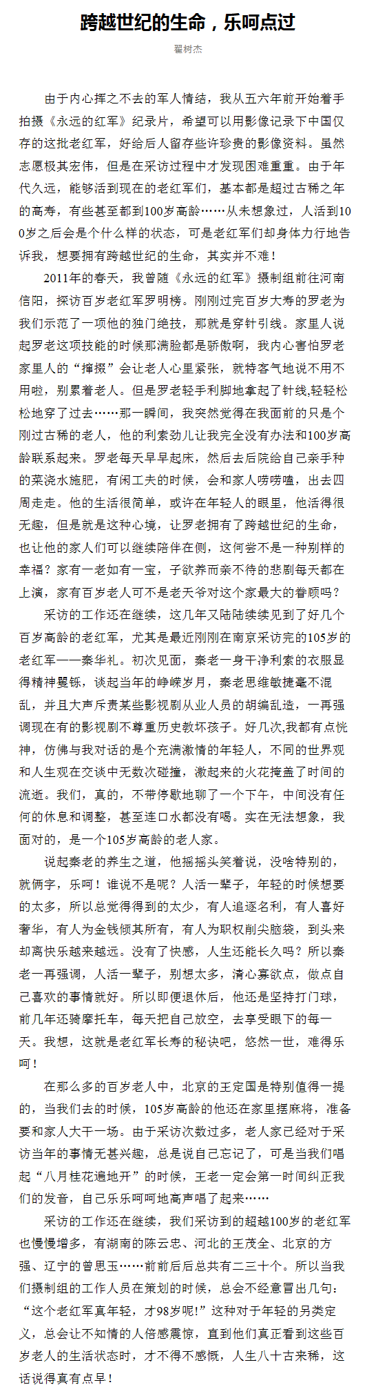 【新民晚報】跨越世紀(jì)的生命,樂呵點過