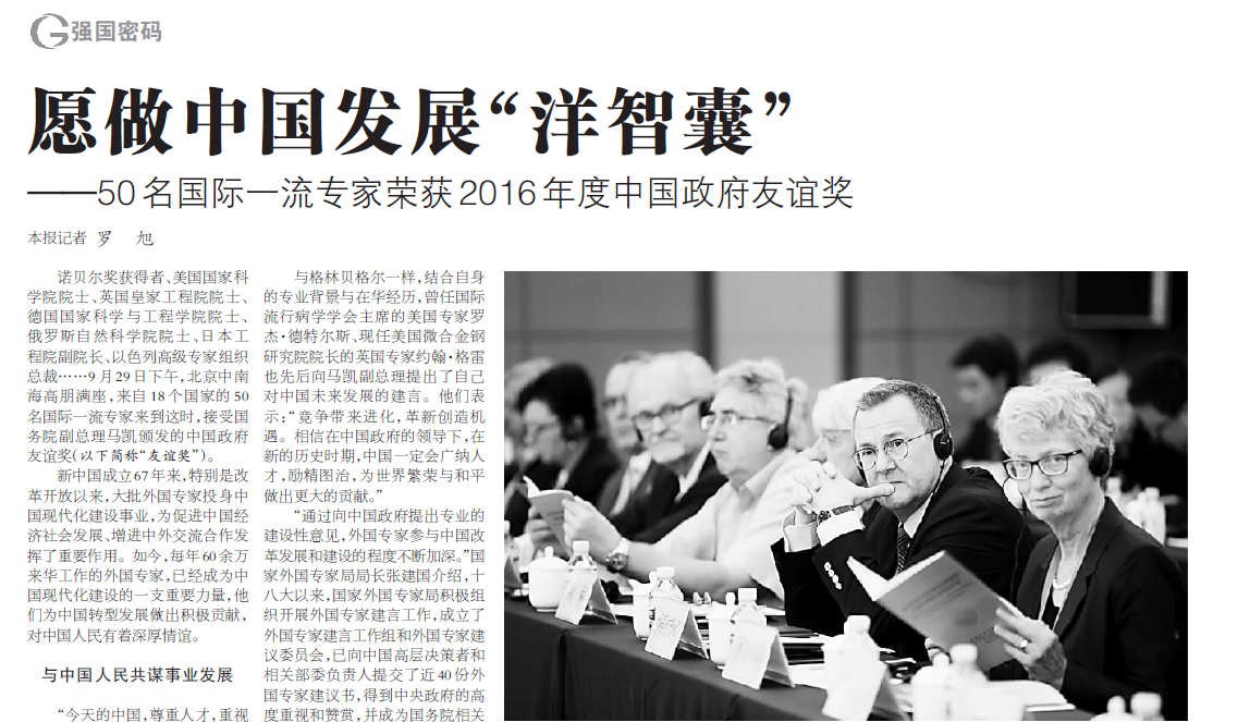 【光明日?qǐng)?bào)】愿做中國(guó)發(fā)展“洋智囊”