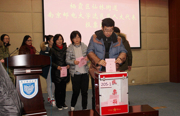 根據(jù)選舉法和省選舉實施細則的有關(guān)規(guī)定,按照鼓樓區(qū)、棲霞區(qū)關(guān)于區(qū)人大代表換屆選舉工作的相關(guān)安排,我校于11月下旬開展了區(qū)人大代表換屆選舉投票工作,我校黨政領(lǐng)導(dǎo)及各學(xué)院師生26000余名選民分別到三牌樓選區(qū)、仙林選區(qū)的114個投票站參加投票選舉。校黨委副書記、紀(jì)委書記朱永平,副校長張志華分別主持了兩校區(qū)的投票。選舉結(jié)果分別報經(jīng)鼓樓區(qū)、棲霞區(qū)選舉委員會審核,確認(rèn)南京郵電大學(xué)選區(qū)的選舉結(jié)果有效,張玲華當(dāng)選鼓樓區(qū)第二屆人大代表,沈蘇彬、胡縱宇當(dāng)選棲霞區(qū)第十八屆人大代表。 我校區(qū)人大代表選舉工作啟動以來,校黨委高度重視,黨委書記劉陳親自擔(dān)任領(lǐng)導(dǎo)小組組長。在區(qū)人大選舉委員會的部署下,我校嚴(yán)格換屆選舉工作程序,在前期準(zhǔn)備工作階段、宣傳發(fā)動和選民登記階段、資格審查階段、提名推薦和協(xié)商確定代表候選人階段、組織介紹候選人情況和召開選民代表與候選人見面會階段、投票選舉階段都認(rèn)真把關(guān),同時積極營造良好的輿論氛圍,使換屆選舉工作有序推進。根據(jù)法律規(guī)定,本著公開、公平、公正的原則,經(jīng)政黨、人民團體和選民依法提名推薦,在充分尊重民意的基礎(chǔ)上,按照正式代表候選人應(yīng)多于應(yīng)選代表名額三分之一至一倍的規(guī)定,通過“三上三下”的辦法確定了我校兩個選區(qū)五位正式代表候選人,最終選舉產(chǎn)生了三位區(qū)人大代表。
