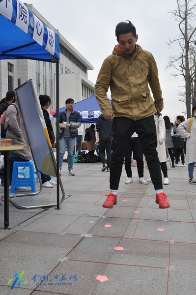 中國(guó)江蘇網(wǎng)4月1日訊(通訊員 張前 趙雨柔 記者 羅鵬)“碎碎碎”“倒倒倒”“跳格子”......在南京郵電大學(xué)仙林校區(qū),一些簡(jiǎn)單的游戲吸引了眾多大學(xué)生。原來,該校第二屆心理博覽會(huì)正在進(jìn)行。
