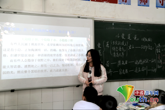南京郵電大學(xué)研究生支教團(tuán)蔣麗婷在公開課上。蔣麗婷 供圖
