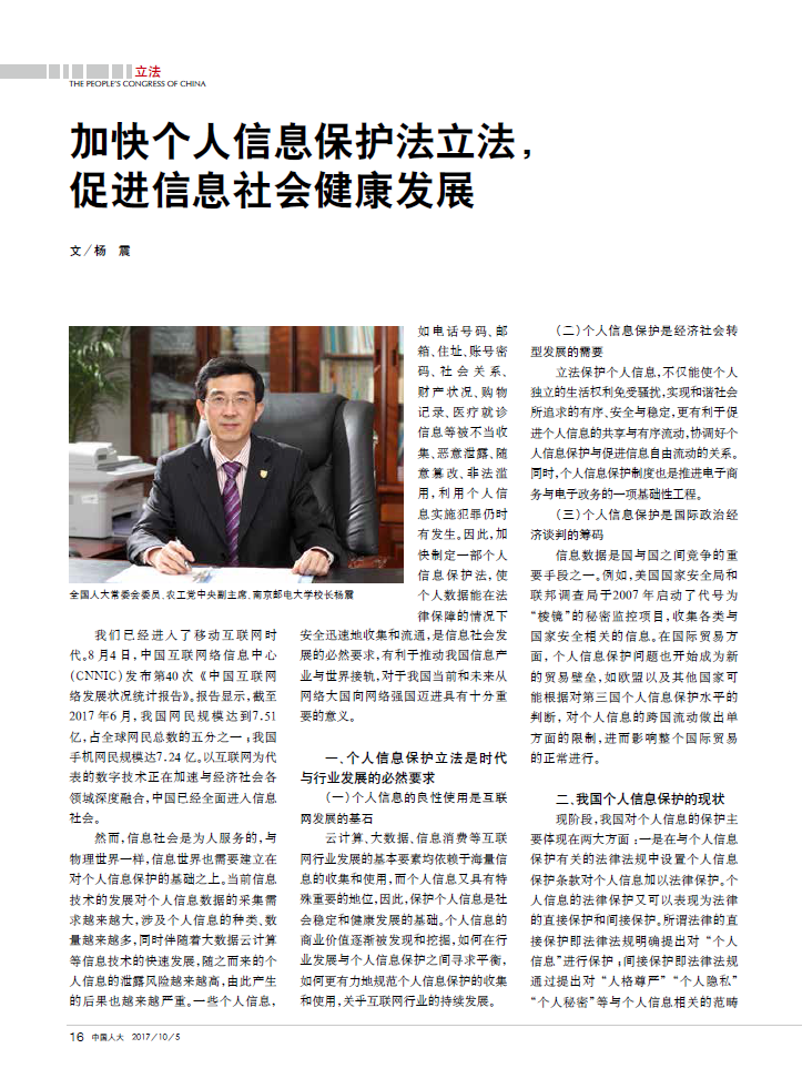 【中國人大】加快個人信息保護法立法,促進信息社會健康發展
