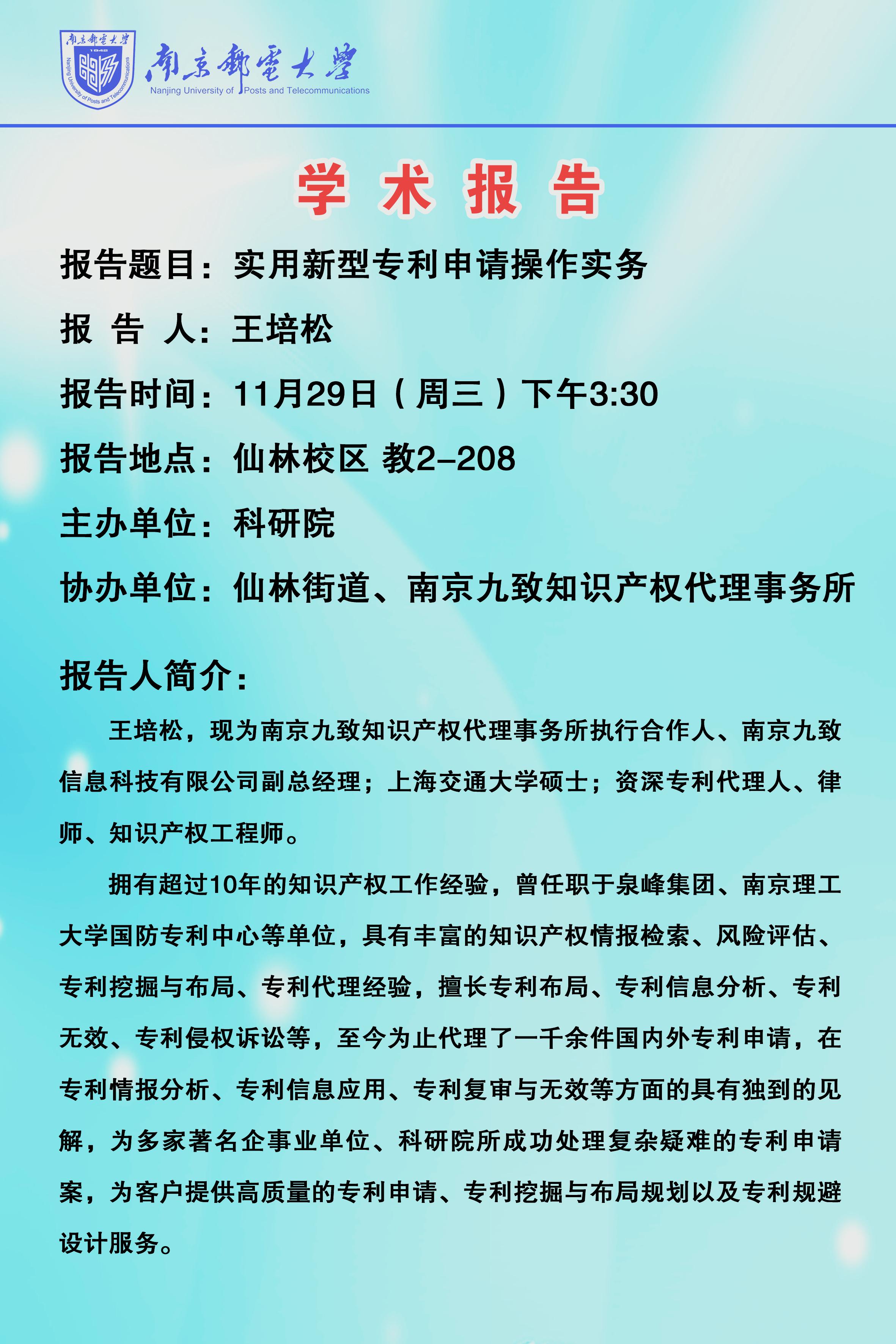 | 關于舉辦“實用新型專利申請操作實務”學術報告的通知 |