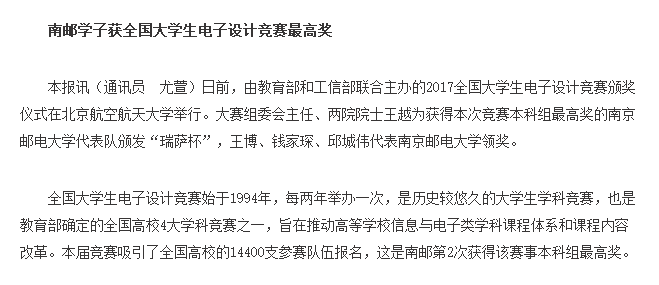 【江蘇教育報】南郵學子獲全國大學生電子設計競賽最高獎