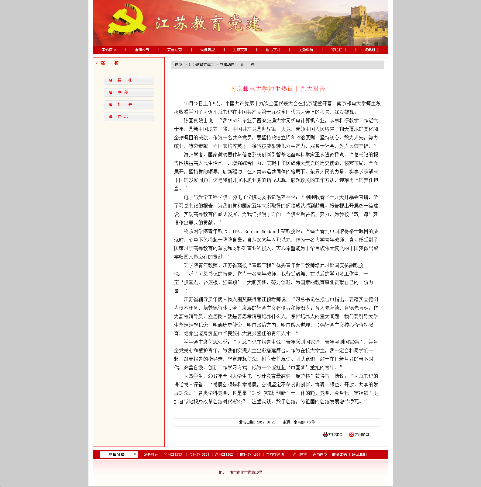 【江蘇教育黨建】南京郵電大學(xué)師生熱議十九大報告