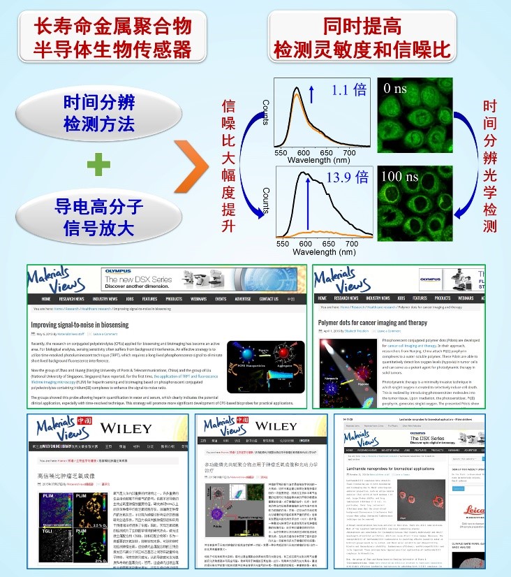進一步,團隊實現了金屬有機半導體的高靈敏“信息傳感”功能,利用長壽命三重激發態,通過時間分辨光學技術提高生物信息傳感信噪比。趙強教授解釋說,比如在用光學傳感器檢測癌細胞時,血液中同時存在的其它熒光生物分子,會對檢測信號產生嚴重干擾。而金屬有機半導體是一種磷光材料,發光壽命遠遠長于熒光物質,非常有利于通過時間分辨光學技術,消除“背景干擾信號”,獲得“壽命長”的有效光學信號,從而大大提高檢測靈敏度。成功解決了“生物背景熒光干擾導致檢測信噪比低”這一領域難題。