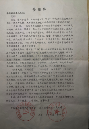 回憶往昔記憶力驚人的秦老,談及當(dāng)下亦不輸后輩。他很關(guān)心國家大事,離休后仍然堅持每天讀書看報,眼睛看不清字以后,就讓子女每天讀給他聽,觀看《新聞聯(lián)播》等新聞節(jié)目,是他每天的“必修課”。交談中,“脫貧”、”三大攻堅戰(zhàn)“等當(dāng)下時事熱詞不時從這位百歲老人口中說出。 2018年中華慈善日之際,我省以“人人參與慈善扶貧,攜手共創(chuàng)幸福江蘇”為主題大力倡導(dǎo)和支持開展“精準(zhǔn)扶貧·慈善一日捐”活動。省級機關(guān)工委、省民政廳、省慈善總會聯(lián)合省委宣傳部、省教育廳等單位共同開展此活動。秦華禮的小女兒秦志紅告訴記者,今年父親從報紙上得到捐款信息,便讓自己主動聯(lián)系省慈善總會,盡他所能捐了兩萬元。秦老關(guān)注慈善、熱心公益已持續(xù)多年。這些年來,印尼海嘯、汶川地震、四川發(fā)生嚴(yán)重泥石流等事件中,都有秦老慷慨相助的身影。秦志紅說,記憶中父親沒有什么存款,平常生活中很節(jié)儉,總在自己能力允許范圍內(nèi),盡力幫助困難群眾。
