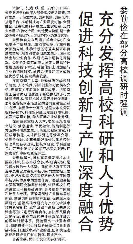 【新華日?qǐng)?bào)】充分發(fā)揮高校科研和人才優(yōu)勢(shì) 促進(jìn)科技創(chuàng)新與產(chǎn)業(yè)深度融合