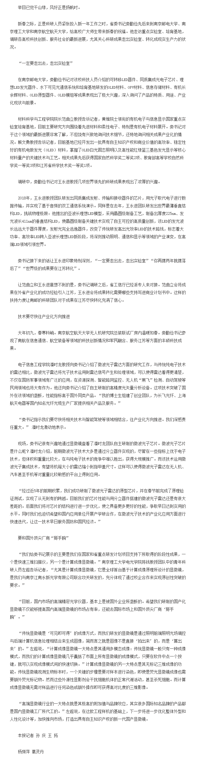 【新華日報】世界級科研成果要在江蘇落地