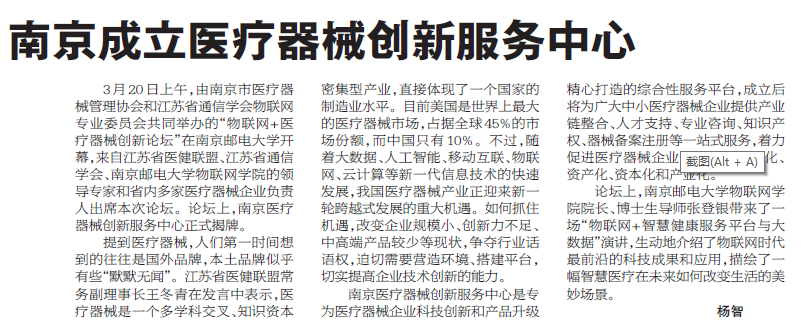 | 【揚子晚報】南京成立醫療器械創新服務中心 |