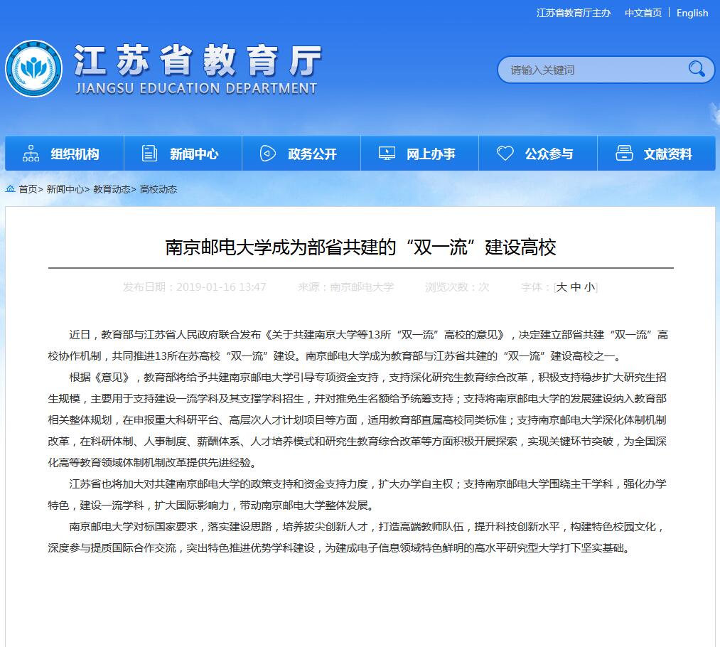 【江蘇教育】南京郵電大學成為部省共建的“雙一流”建設高校