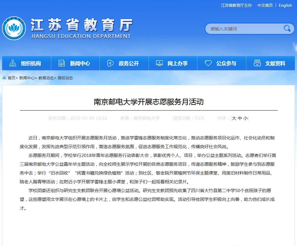 【江蘇教育】南京郵電大學開展志愿服務(wù)月活動