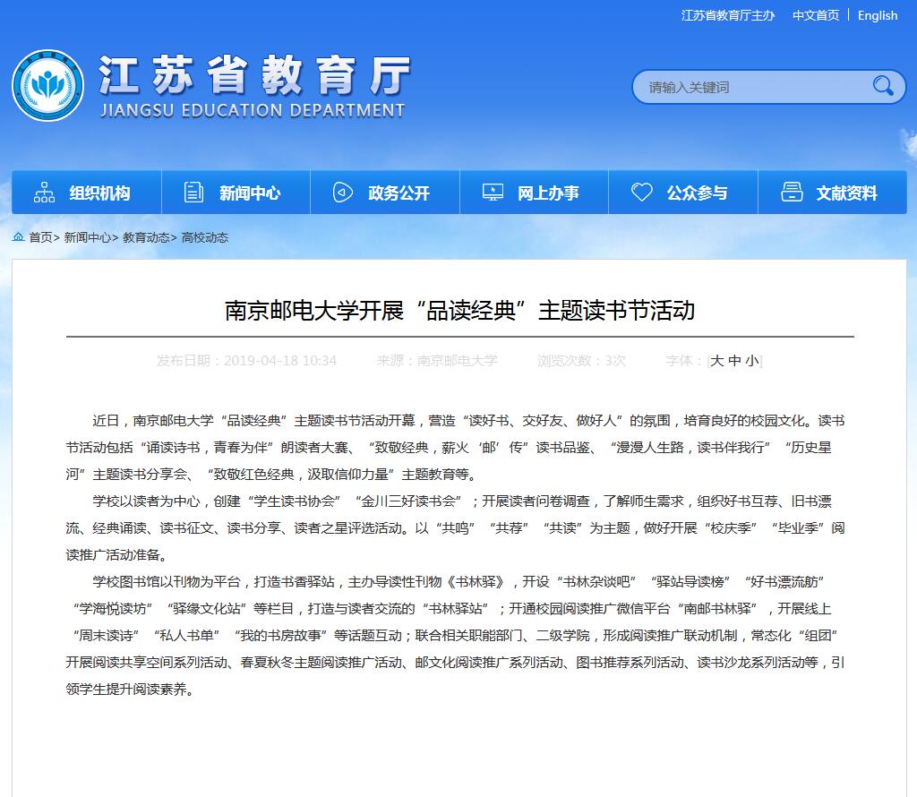 | 【江蘇教育】南京郵電大學開展“品讀經典”主題讀書節活動 |