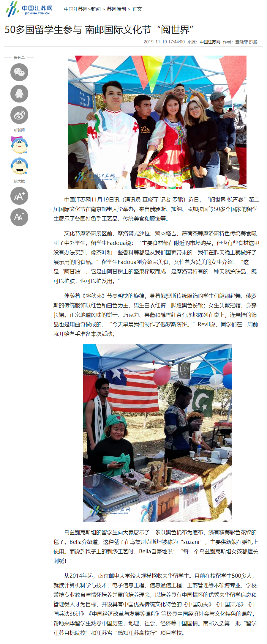 | 【中國江蘇網(wǎng)】50多國留學(xué)生參與 南郵國際文化節(jié)“閱世界” |