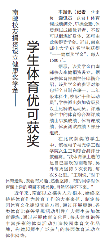 【江蘇教育報】學生體育優可獲獎