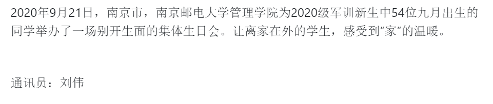| 【新華日報客戶端】大學軍訓新生集體生日會 感受“家”的溫暖 |