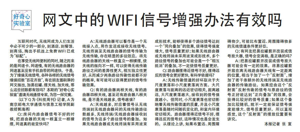| 【新華日報】網(wǎng)文中的WIFI信號增強辦法有效嗎 |