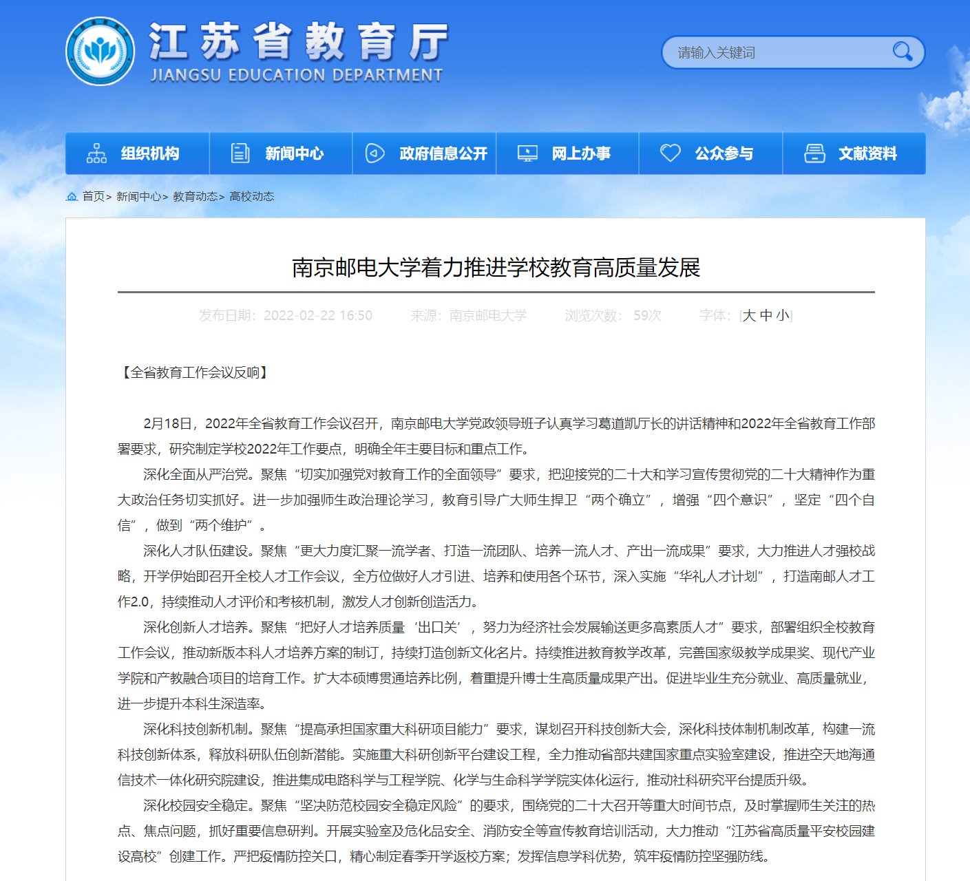 | 【省教育廳官網】南京郵電大學著力推進學校教育高質量發展 |