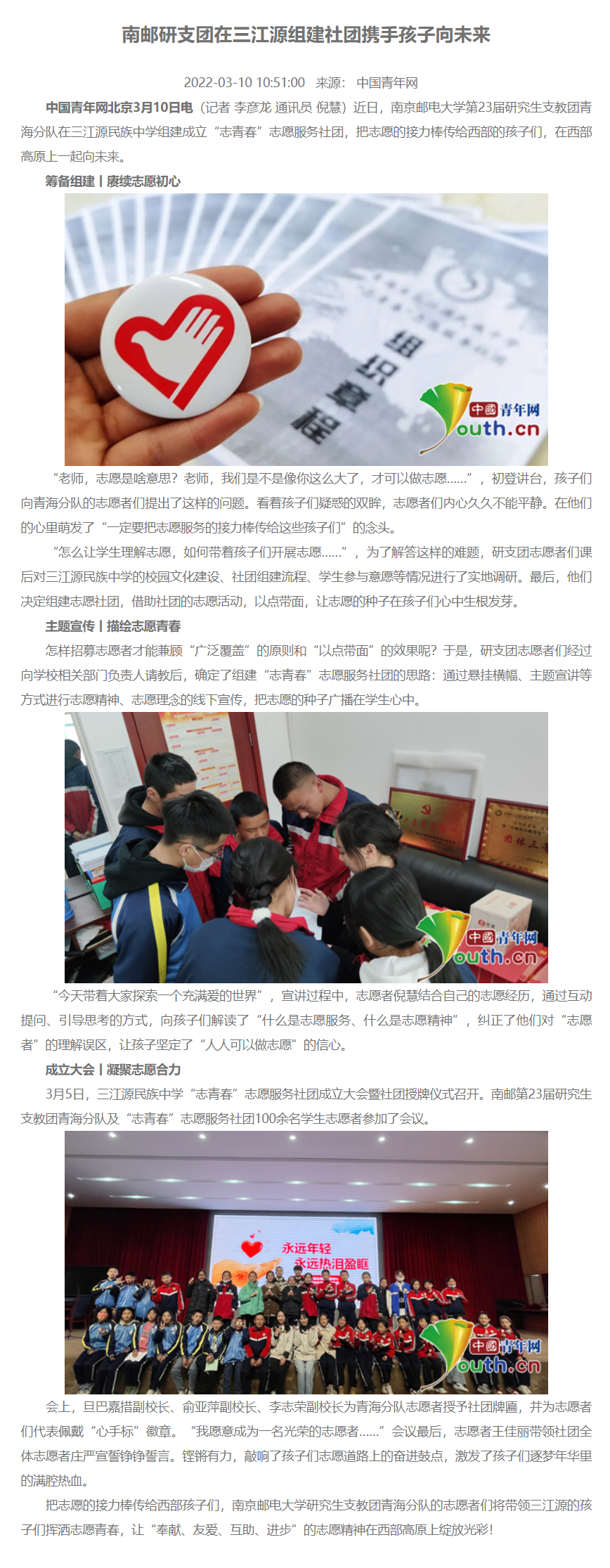【中國青年網】南郵研支團在三江源組建社團攜手孩子向未來