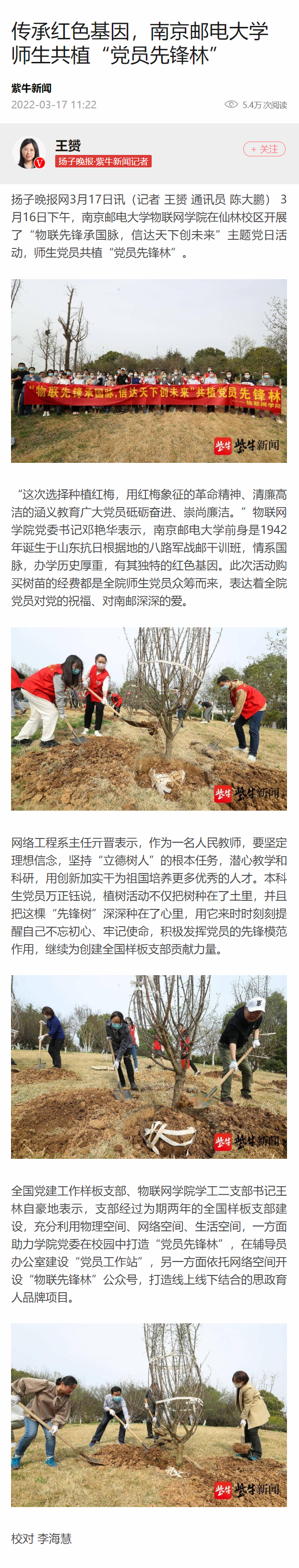 | 【揚子晚報客戶端】傳承紅色基因,南京郵電大學師生共植“黨員先鋒林” |