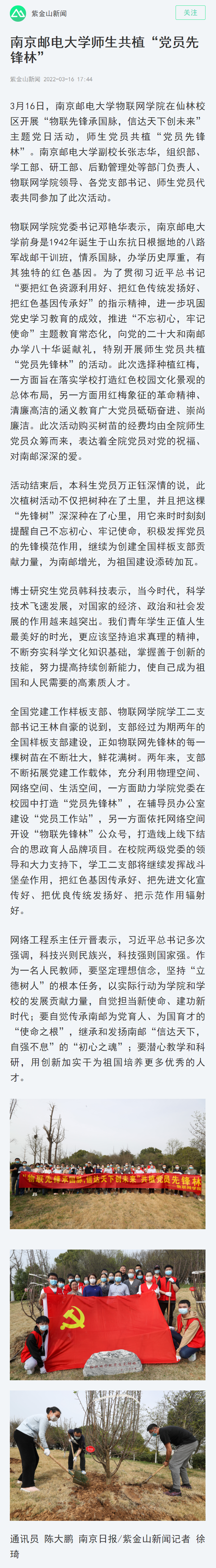 | 【南京日報客戶端】南京郵電大學師生共植“黨員先鋒林” |