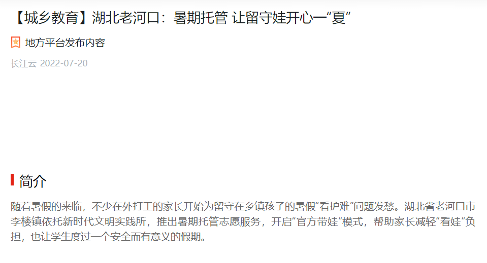 | 【學習強國】湖北老河口:暑期托管 讓留守娃開心一“夏” |