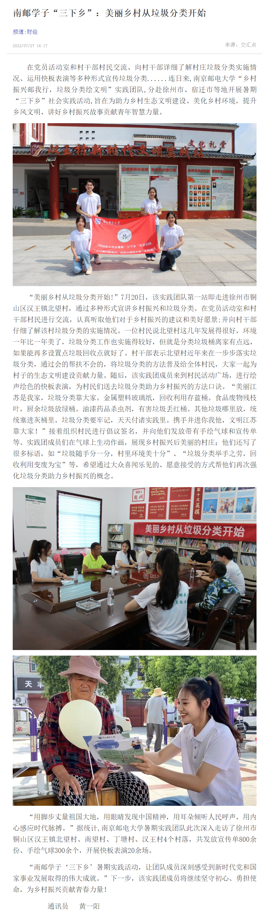 【新華日報客戶端】南郵學子“三下鄉”:美麗鄉村從垃圾分類開始