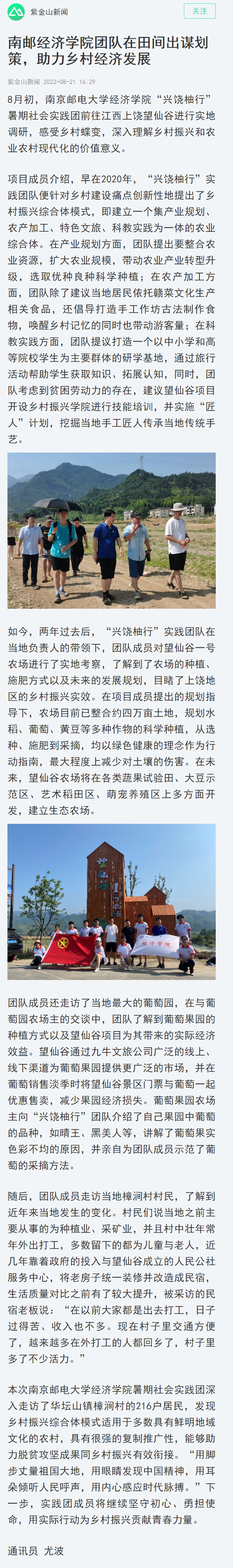 【南京日報客戶端】南郵經濟學院團隊在田間出謀劃策,助力鄉村經濟發展