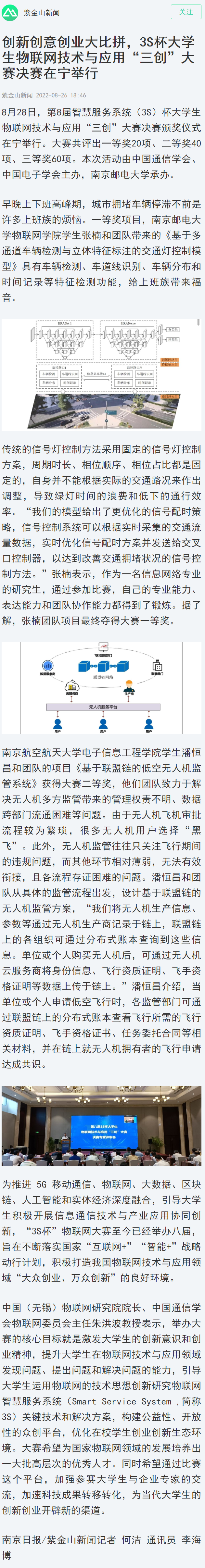 | 【南京日報(bào)客戶端】創(chuàng)新創(chuàng)意創(chuàng)業(yè)大比拼,3S杯大學(xué)生物聯(lián)網(wǎng)技術(shù)與應(yīng)用“三創(chuàng)”大賽決賽在寧舉行 |