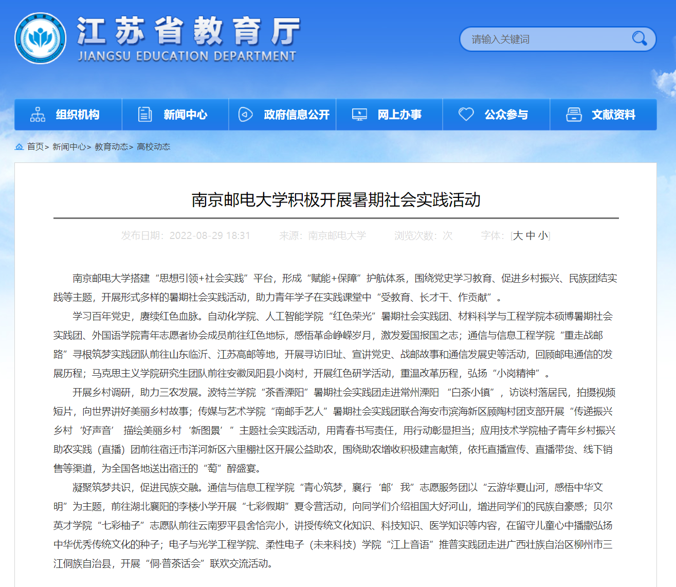 【省教育廳官網】南京郵電大學積極開展暑期社會實踐活動