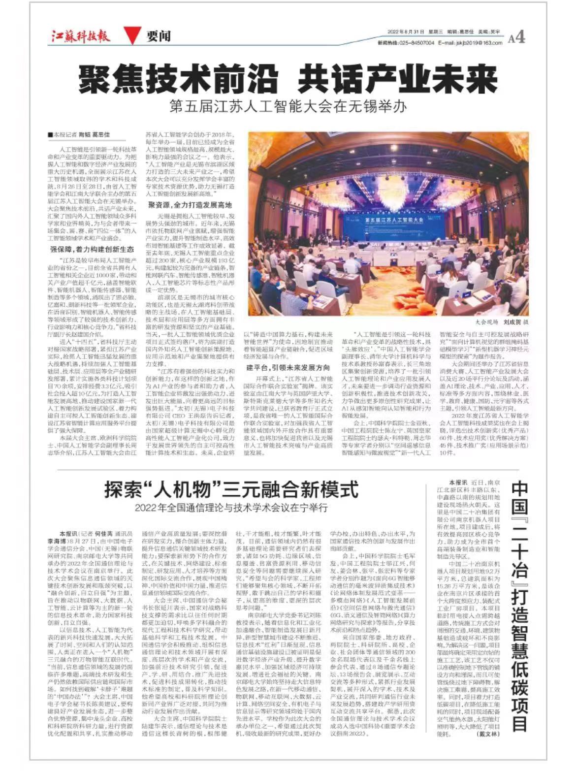 | 【江蘇科技報】探索“人機物”三元融合新模式 2022年全國通信理論與技術學術會議在寧舉行 |