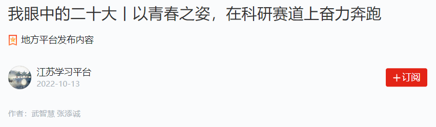 | 【學習強國】我眼中的二十大丨以青春之姿,在科研賽道上奮力奔跑 |