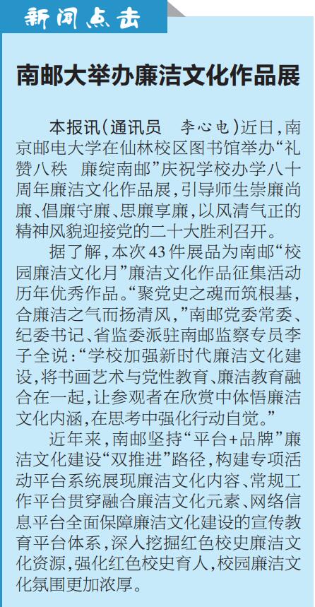 | 【江蘇教育報】南郵大舉辦廉潔文化作品展 |