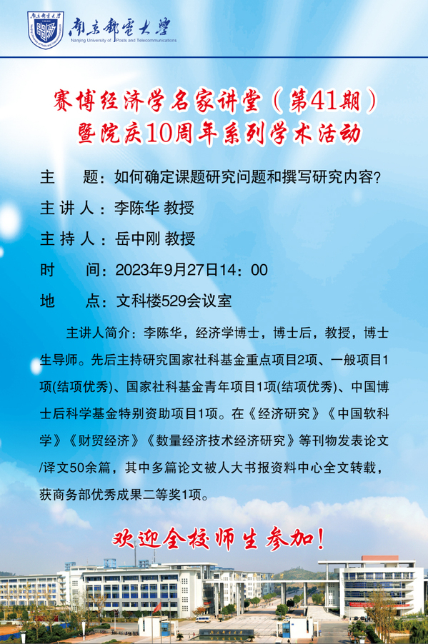 南京審計大學(xué)李陳華教授學(xué)術(shù)報告:《如何確定課題研究問題和撰寫研究內(nèi)容》 |