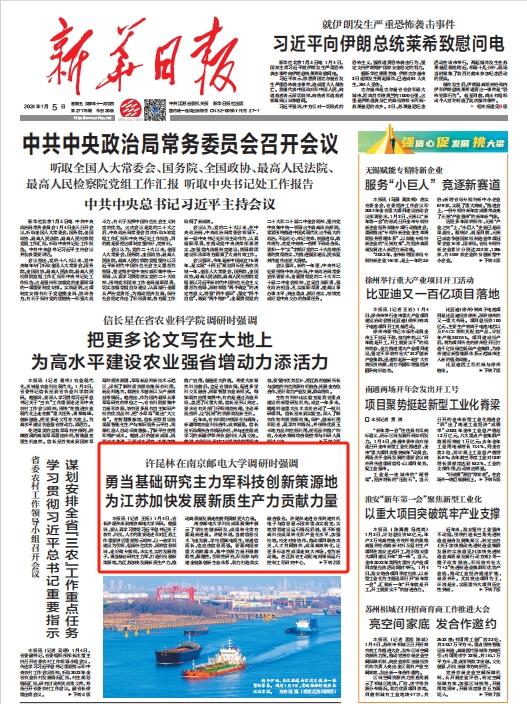 | 【新華日報頭版】許昆林在南京郵電大學調研時強調 勇當基礎研究主力軍科技創(chuàng)新策源地 為江蘇加快發(fā)展新質生產(chǎn)力貢獻力量 |