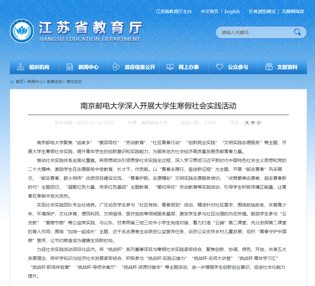 | 【省教育廳官網】南京郵電大學深入開展大學生寒假社會實踐活動 |