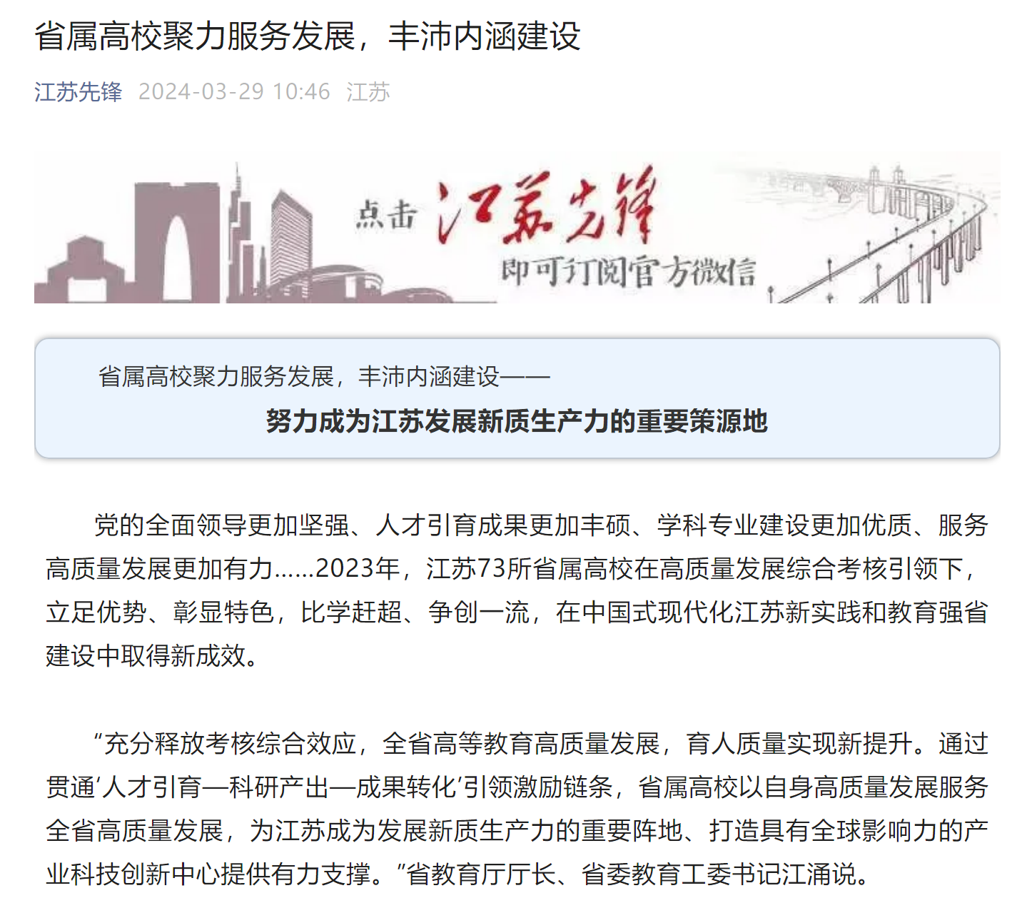 | 【江蘇先鋒】省屬高校聚力服務發展,豐沛內涵建設 |