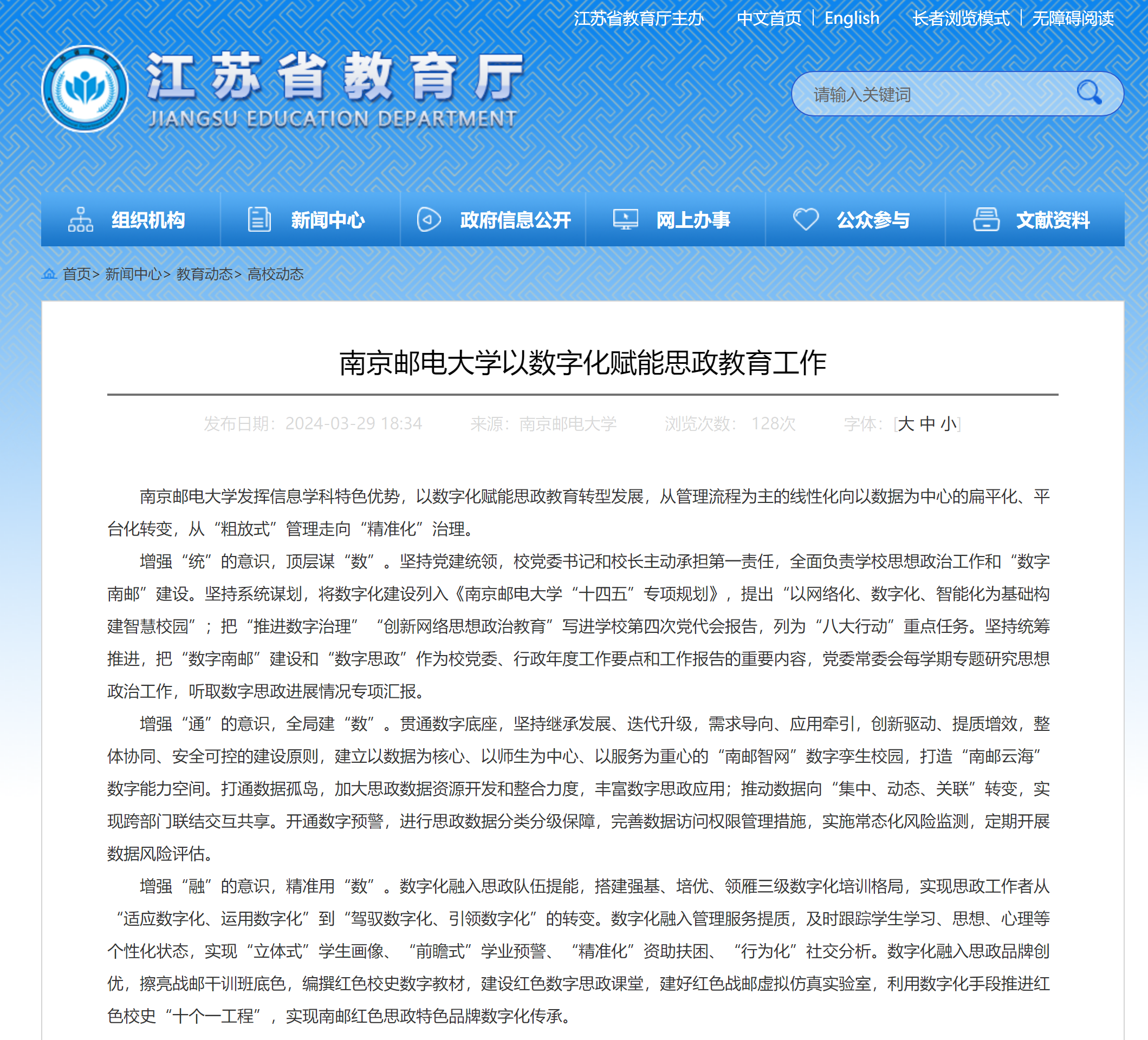 | 【省教育廳官網】南京郵電大學以數字化賦能思政教育工作 |