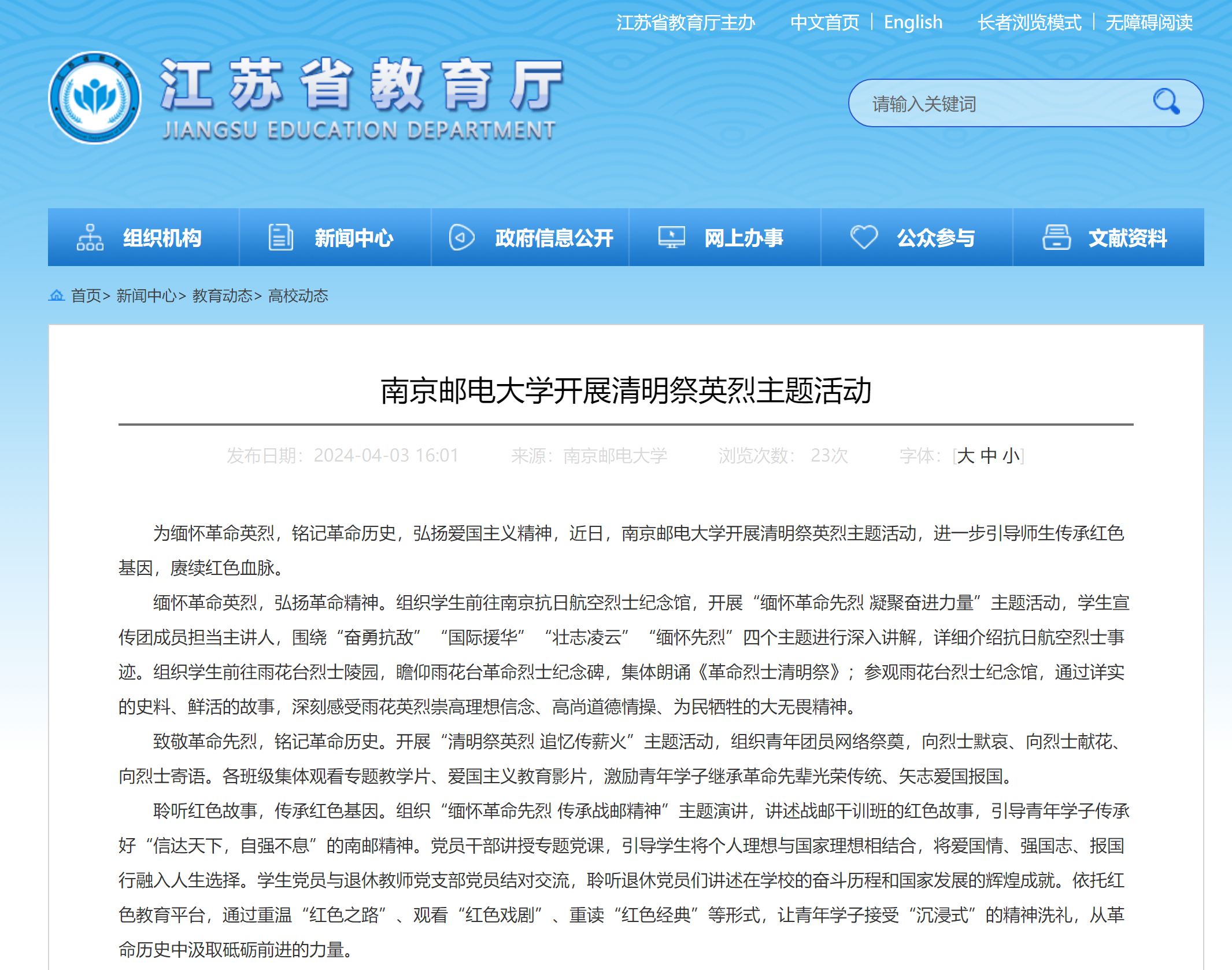 【省教育廳官網】南京郵電大學開展清明祭英烈主題活動
