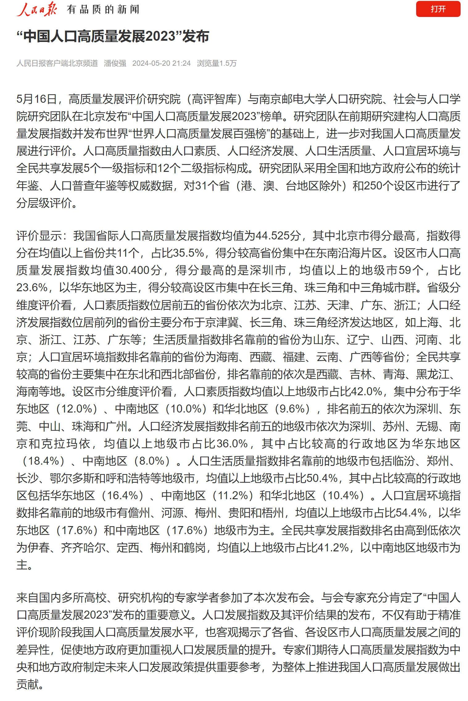 | 【人民日報客戶端】“中國人口高質(zhì)量發(fā)展2023”發(fā)布 |